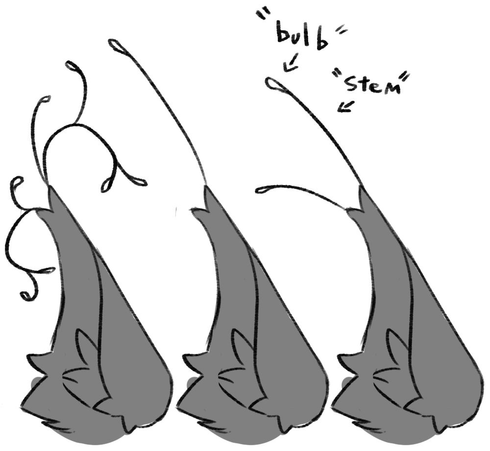 Volax cannot have cat, wolf or dog tails. (Entirely long fur, Unless it is a nub tail)Volax usually have 2 antenna minimum at the base of the tail, though this is optional.